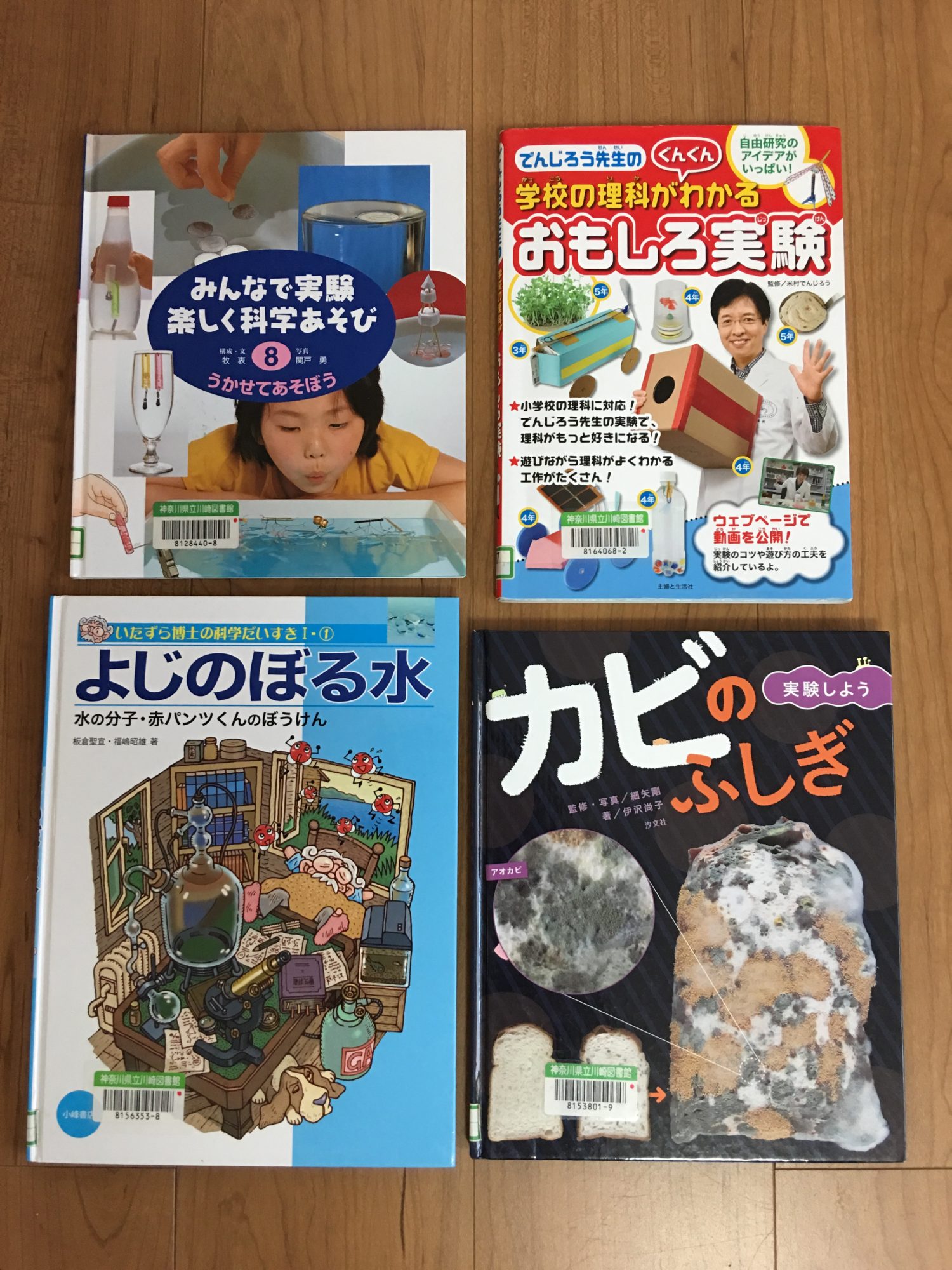 クラブでどんな実験をするか調べているようだったので、図書館で本を借りてきました。