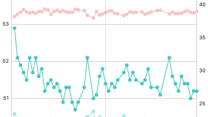 USAGIです。 小4息子が肥満ぎみなので、意識づけのために先月から毎朝体重と体脂肪率を計測しています。 身長150cmくらい。体重51〜52kg。 2か月続けてみて 濃い緑色が体重。薄い緑が体脂肪率。ピンクはあまり気にしてませんが筋肉率? スタート時の体重は52.9kg。 増えたり減ったりしながら、現在51.2kg。 身長も伸びる時期だし、激増しなければいいくらいの気持ちで、気長に取り組んでいま […]